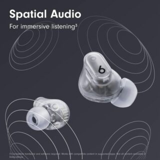 Upgraded voice-targeting microphones in Beats Studio Buds + give you high-quality call performance. These powerful microphones actively filter out background noise to enhance the clarity of your voice.
