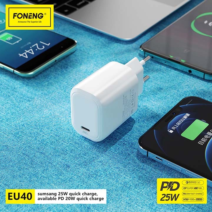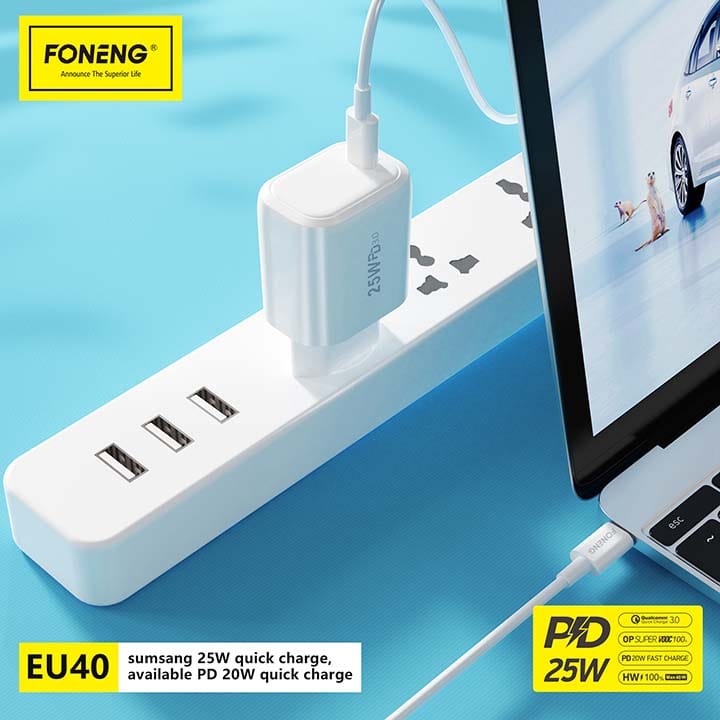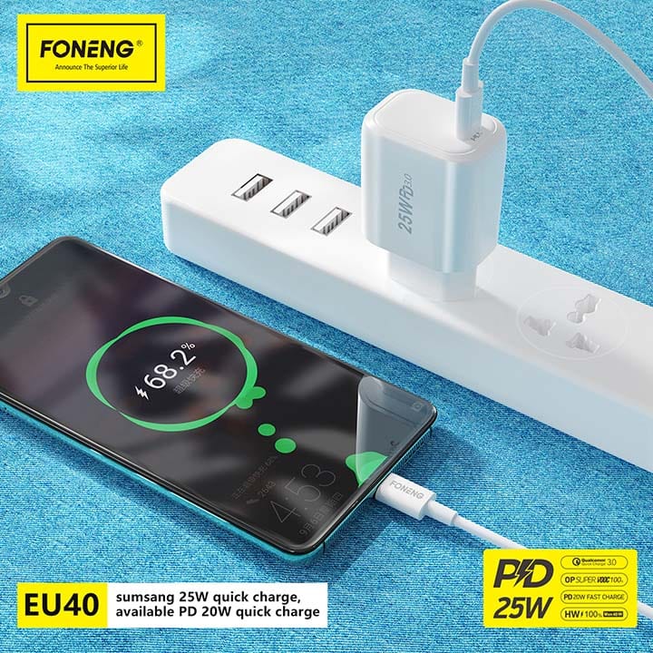 Introducing the EU40 PD 25W, a powerhouse in charging technology. This versatile device offers a variety of options including Single, C-C KIT, and C-LIGHTNING KIT-1 M WHITE, ensuring seamless connectivity. With an impressive output power of 25W Max, it delivers rapid charging for your devices. Its input voltage range of 100-240V at 50/60Hz guarantees adaptability across regions. The output voltage spans from 5V/3A to 12V/2.08A, with MAXPPS settings from 3.3V-5.9V/3A to 3.3V-11V/2.25A, catering to different charging needs. It’s compliant with various fast-charging protocols including Samsung 25W, PD20W quick charge, QC3.0, OPPO Super V00C, and 40W MAX super fast charging. Despite its robust capabilities, its weight of 46g±1g and compact size of 423079.5mm ensure easy portability. The EU40 PD 25W sets a new standard in charging convenience and efficiency.