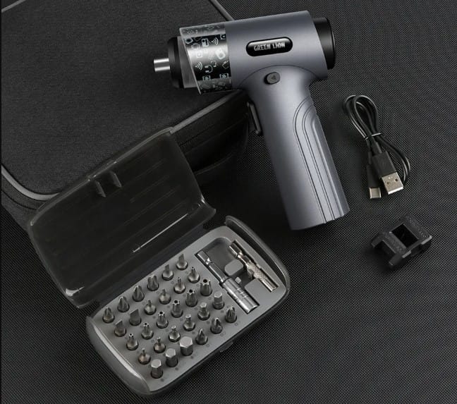 Sleek and powerful, the Green Lion 35-in-1 Electric Screwdriver Set features a 2500mAh battery, 5N·m torque, 200 rpm speed, and premium S2 steel bits—perfect for DIY and pro tasks. Comes with LED light, USB-C charging, and a portable storage bag for ultimate convenience.