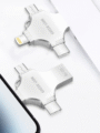 Compatible with iOS iPhone and iPad devices, USB3.0 interface for PCs, and Micro USB interface for Android smartphones and tablets. This 4-IN-1 USB flash drive has four connections. The iPad Pro, MacBook Pro, and other devices that use the Type-C interface are compatible with the Type-C interface. Practically all audio and video formats are compatible. You can always enjoy your favorite music and movies. You won’t have to be concerned about your phone, camera, or tablet running out of memory. This USB memory stick has a huge capacity for data storage. Photos and movies may be quickly and easily transferred between Android, iPhone, iPad, and desktops using a Lightning Flash Drive. enables memory free on your mobile devices without the use of a wire or iCloud.
