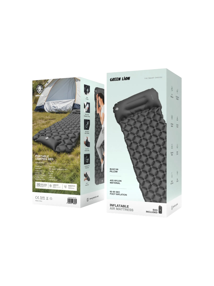 Blending comfort with practicality, the Green Lion Inflatable Air Mattress is your perfect companion for camping, outdoor adventures, and travel. Designed in a sleek beige color, this mattress features an ergonomic sleeping shape to support your body and provide a more restful sleep wherever you are.
