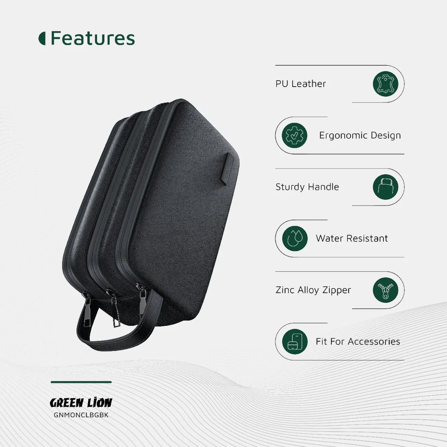 The Green Lion Monarch Clutch Bag combines style, durability, and everyday practicality in one sleek design. Crafted from premium PU leather with a water-resistant finish, this clutch protects your belongings while maintaining a modern and elegant look.
