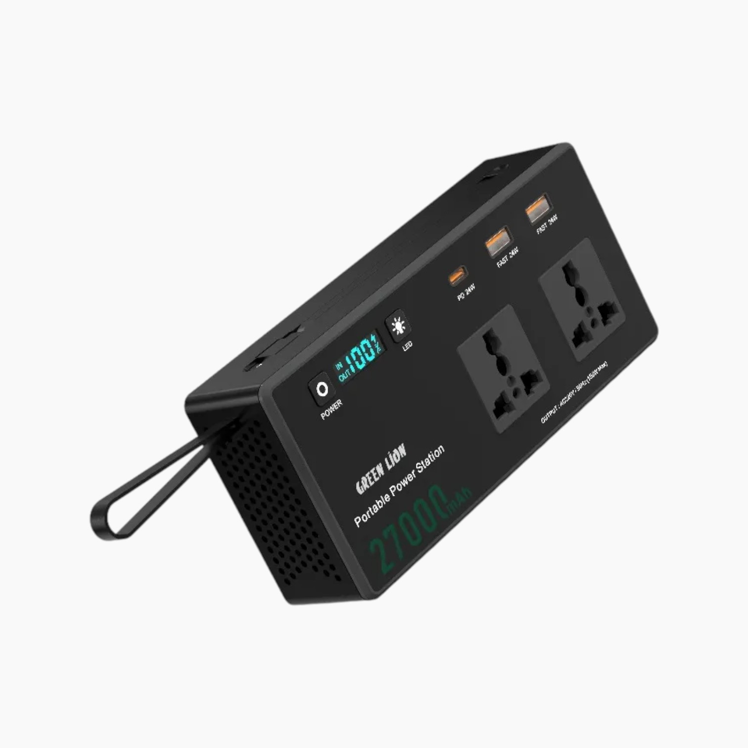 Green Lion Volt Mate 27000mAh Power Station delivers fast, portable power with USB-C PD 60W, USB-A QC 24W, and 150W AC output—ideal for laptops, phones, and emergency gear. With LED & SOS flashlights, real-time digital display, and fast-charging support (5V–20V), it’s built for outdoor use, travel, and backup power. Compact, safe, and ready for any situation.
