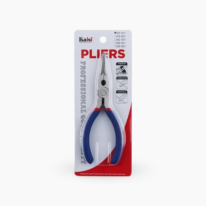 KAISI K-011 are hand-electronic tools designed for cutting cable wires, featuring long nose and diagonal cutting capabilities, made from durable Chrome Vanadium Steel.
