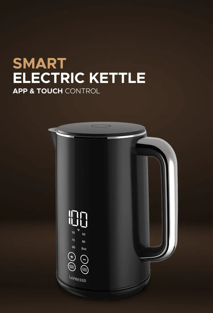LePresso Smart Kettle blends style and tech with a 1.7L capacity, touch controls, and app connectivity. Set and maintain your ideal temperature (40–100°C) from anywhere—efficient, precise, and button-free.