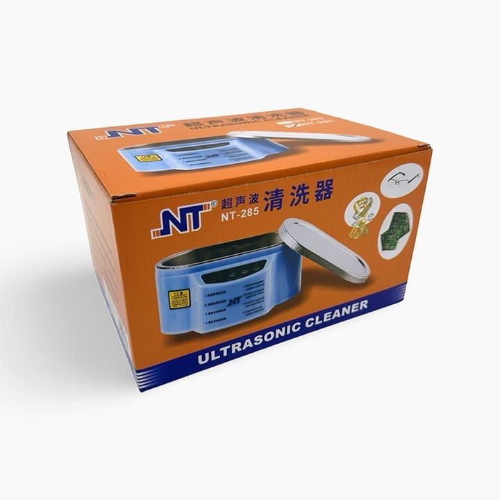 The NT-285 Dual Shock Digital Ultrasonic Cleaner is a versatile 35W/50W, 220V cleaning device suitable for jewelry, mobile phones, and eyeglasses.