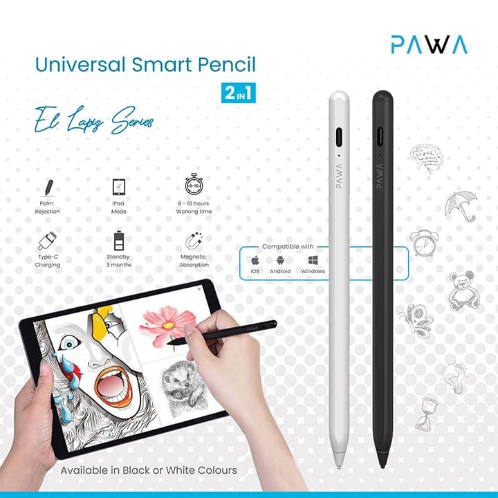 This innovative smart pencil offers 8 to 10 hours of working time, standby for up to 3 months and convenient Type-C charging. The magnetic absorption feature ensures easy storage and access. Say goodbye to accidental marks with the palm rejection technology. Experience seamless writing and drawing on your device with the Pawa El Lapiz Series 2 in 1 Universal Smart Pencil.