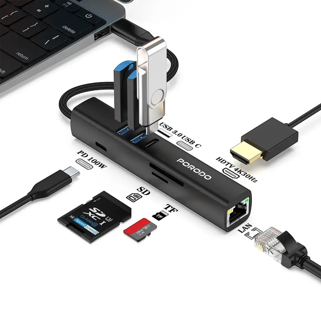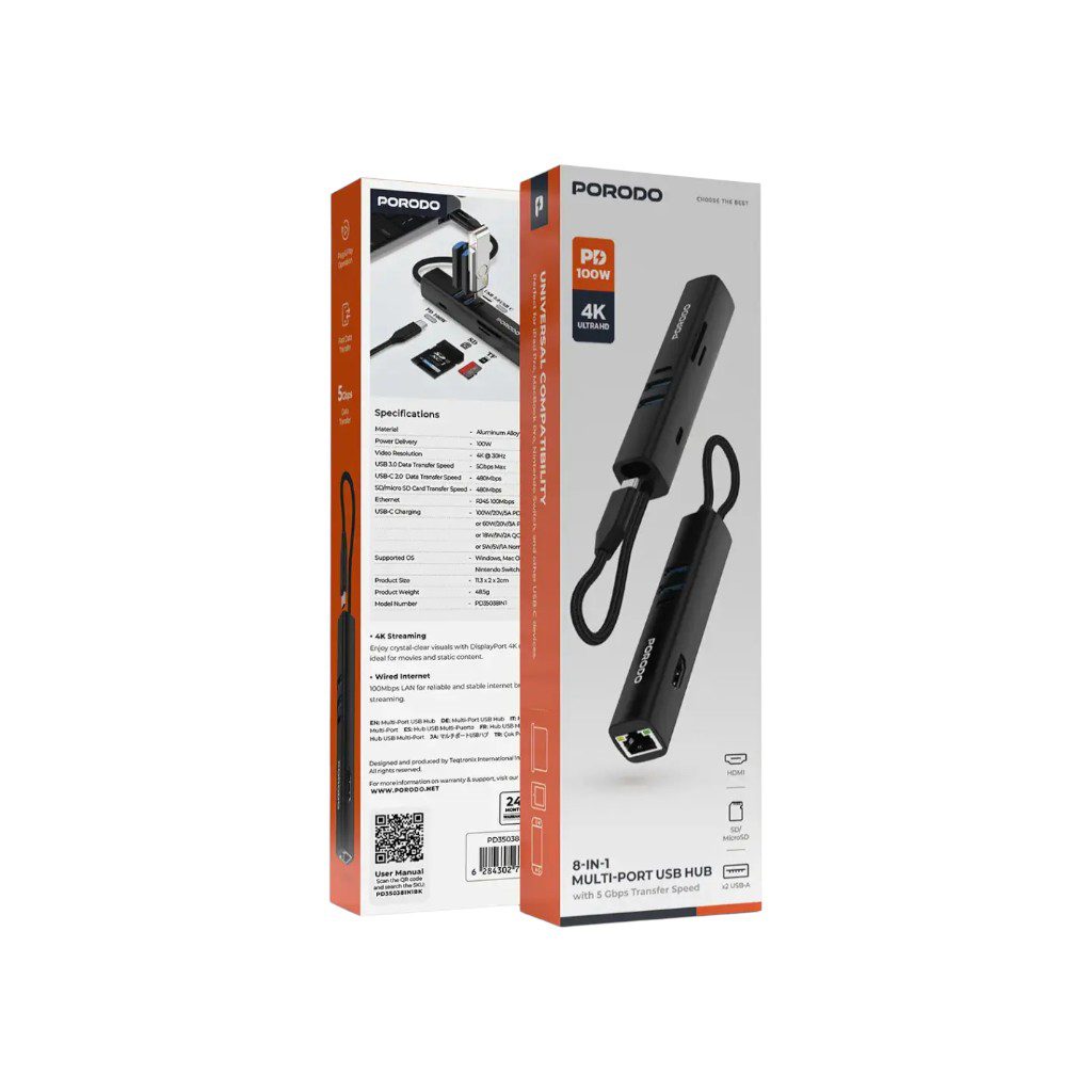 Maximum Connectivity: Porodo 8-In-1 Multi-Port USB Hub (5Gbps)