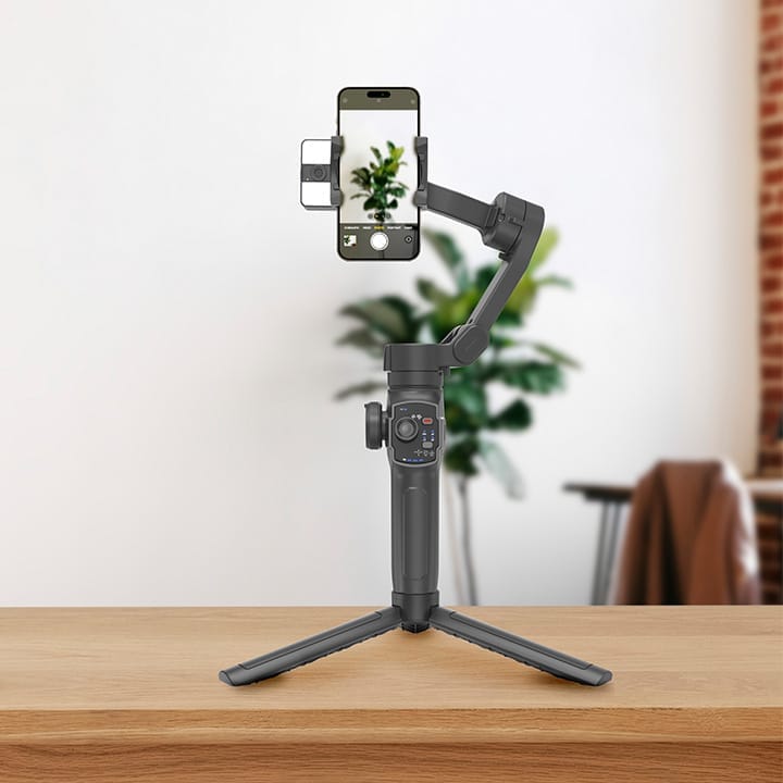 With AI tracking and gesture control, this gimbal allows you to effortlessly follow subjects and create dynamic shots. The iOS/Android app provides additional features such as video effects and FPV mode for a truly immersive filming experience. Its 3-legged support and folding design make it easy to set up and use on the go, while the built-in extension rod allows for a maximum height.