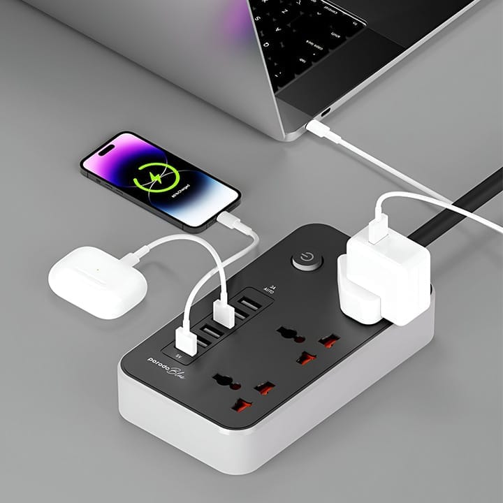 With a 2500W rated power and 5V/3A USB output, this hub features x6 USB-A ports and x3 Type-C ports, providing fast and efficient charging for all your devices. The 2-meter cable allows for flexibility and convenience, making it perfect for home or office use.