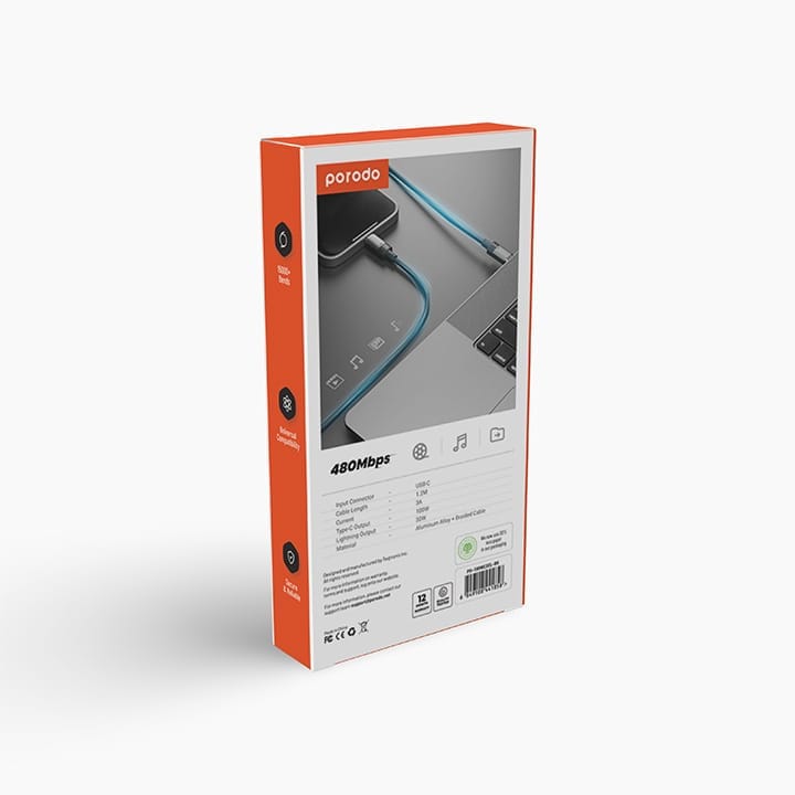 This innovative cable is designed for fast data transfer at 480Mbps and fast charging for Type-C and Lightning devices. With its USB-C compatibility, universal compatibility, and secure magnetic head, this cable is both reliable and convenient. Made with durable aluminum alloy and a braided cable, the Porodo charging cable is built to last.