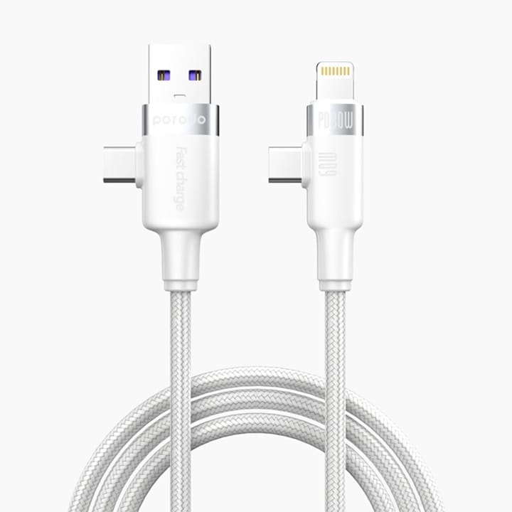 With dual connectors (Lightning, Type-C, USB-A), this universal cable is compatible with a wide range of devices. Enjoy lightning-fast charging with 30W Lightning and 3A USB output. The braided wire design ensures durability and long-lasting performance