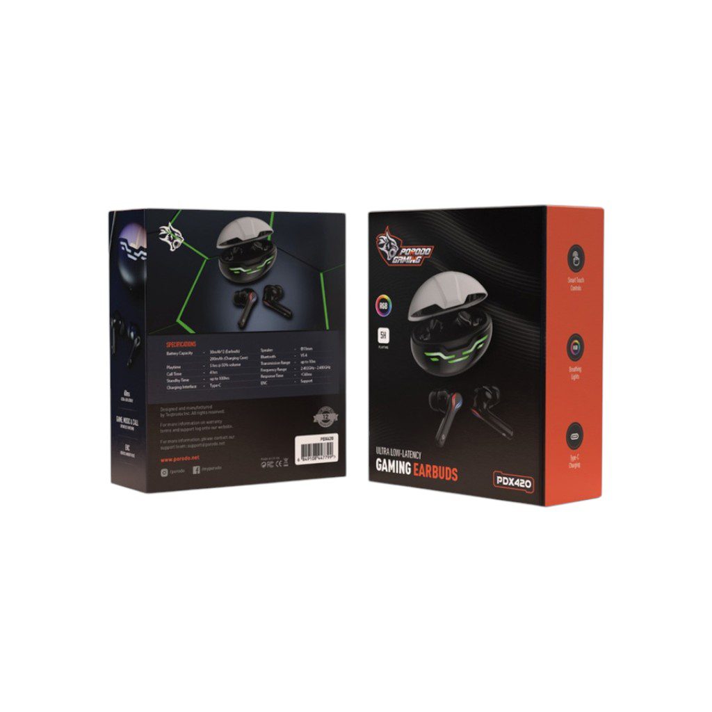 The Porodo Gaming Earbuds don’t just sound the part—they look it too. Featuring striking RGB breathing lights on both the earbuds and the charging case, these earbuds add a futuristic glow to your gaming setup. The Smart Touch Controls allow you to adjust volume, skip tracks, or answer calls with a simple tap, keeping your hands free for the controller.