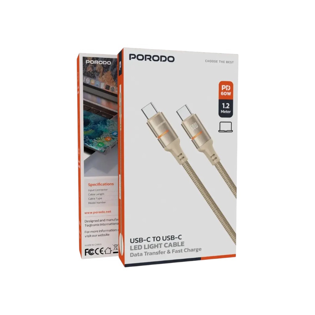The Porodo USB-C to USB-C LED Light Cable stands out because of its commitment to quality. The addition of a subtle LED light indicator helps you find your cable in the dark, while the 60W output ensures you aren’t tethered to a wall for long. It is the perfect addition to any tech kit, offering a “tangle-free” operation that simplifies your digital life.